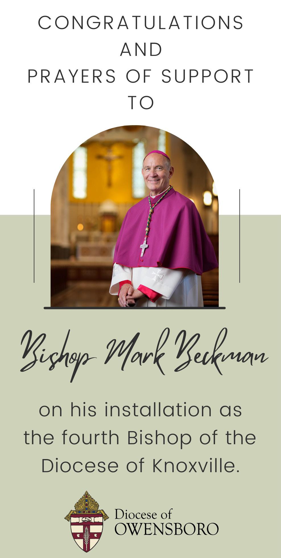 The Knoxville Community of the Secular Order of Discalced Carmelites offers its congratulations and prayers for Bishop Mark Beckman.