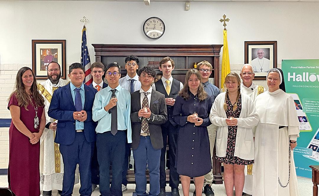 Eighth-graders receive Light of Leadership medals Eighth-graders at St. Mary School in Oak Ridge received blessed Light of Leadership medals during a recent all-school Mass. The annual ceremony acknowledges the special leadership role that accompanies students when they enter their final year at St. Mary. They wear the medals throughout the year to remind them of the role. Above are (from left, front row) Janet Topper, homeroom teacher, eighth-graders Anggel Arellano, Anthonie Pham, Jayden Garcia, Betty Johnson, and Arianna Paoletto and St. Mary principal Sister Mary John Slonkosky, OP, and (back row) St. Mary pastor Father Ray Powell, who blessed the medals, and eighth-graders Wyatt Patterson, Sahir Ramos, Gabriel Hatton, and James Lutz and Deacon John DeClue.