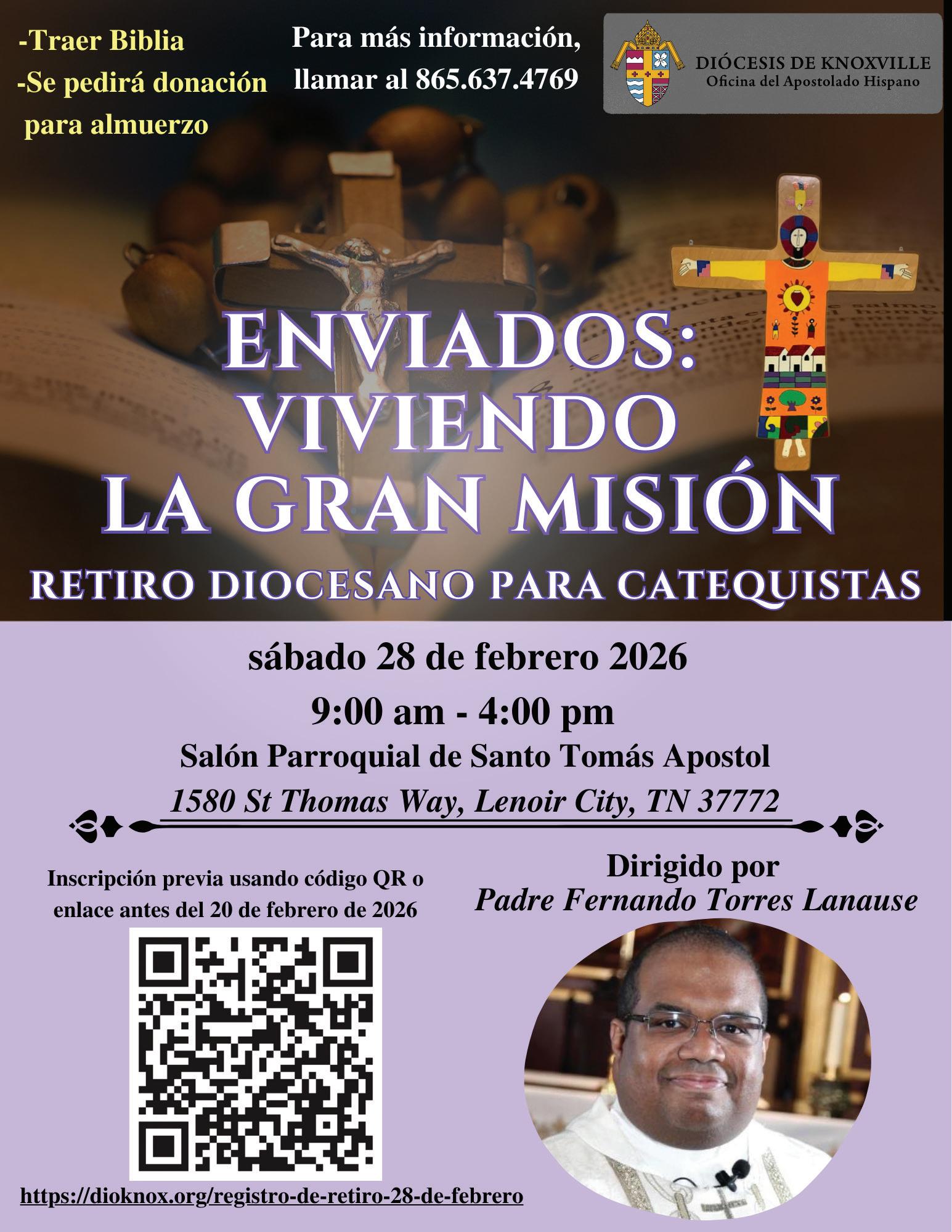 Por eso, invito a todos los jóvenes adultos de 18 a 37 años a participar de este encuentro que marcará su camino de fe aquí en el este de Tennessee. No importa donde estés, ni qué dudas tienes, esta cita es para ti, un cupo está esperando por ti. Regístrate ingresando a dioknox.org/events/jornadadiocesana-de-la-juventud-2026. ■