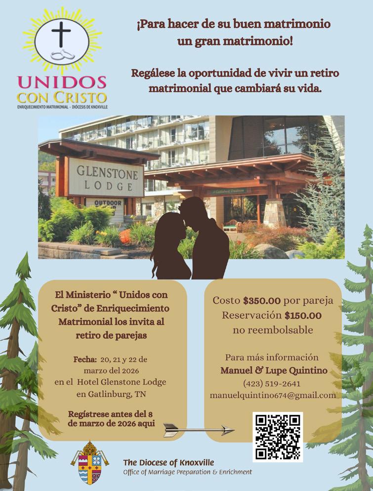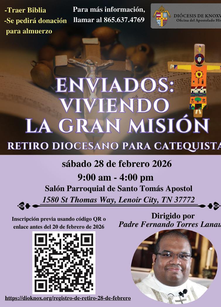 Cualquier persona que tenga conocimiento real o que tenga una causa razonable para sospechar de un incidente de abuso sexual debe reportarlo a las autoridades civiles apropiadas, y al Centro McNabb, nuevo coordinador de asistencia para víctimas de acoso sexual de la diócesis de Knoxville, al número de teléfono para denuncias (865) 3219080. ■