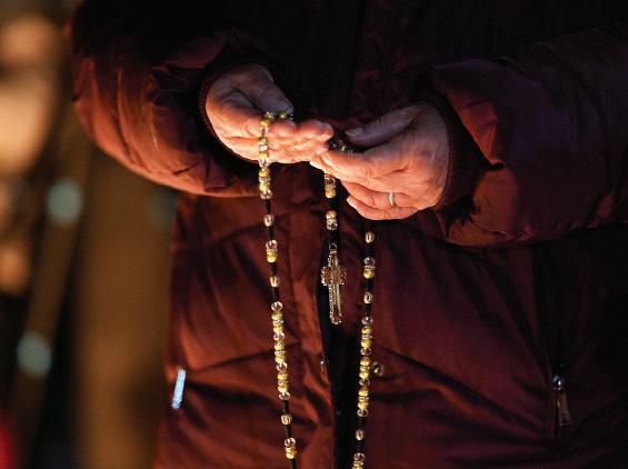 Orando por la paz y respuestas Una mujer sostiene un rosario durante una vigilia el 7 de enero en Minneapolis, donde los conflictos migratorios han sido especialmente graves.