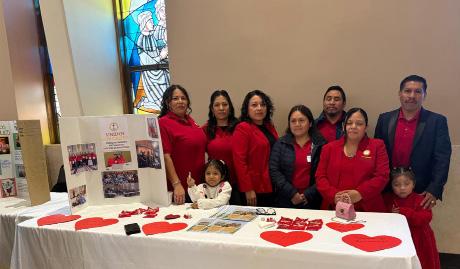 Un llamado alegre a participar A principios de febrero se realizó la Feria de los Ministerios en la Catedral del Sacratísimo Corazón de Jesús. Ministerios litúrgicos, y de evangelización y catequesis, de oración, de matrimonios, de jóvenes, de mujeres, entre otros, estuvieron presentes con información de lo que hacen, invitando a los feligreses a formar parte de sus grupos y apostolados. Esta mesa es del Grupo de matrimonios "Unidos con Cristo". Ver volante en página 3.