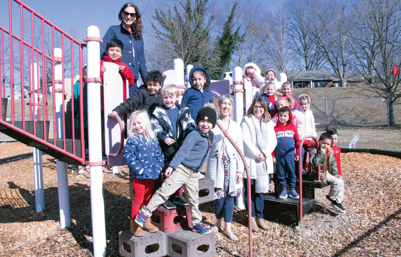 Playtime at St. Dominic Kindergarten teacher Michelle Miller, kindergarten assistant Lauri Moncla, and school director of development and admissions Beth Barnette accompany a group of youngsters to the playground.
