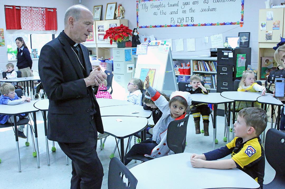 “God called me to be your bishop in the Diocese of Knoxville. So, all of East Tennessee I’m responsible for taking care of. We have 51 churches, eight grade schools, and two Catholic high schools. We have three university centers on the campuses of UT-Chattanooga, UTKnoxville, and East Tennessee State University,” the bishop told the Catholic Schools continued on page B2