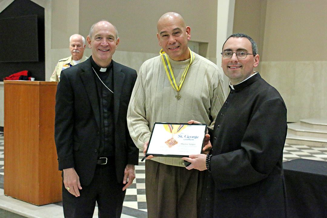 Mr. Vargas, a parishioner of All Saints who is also executive director of the St. Mary’s Legacy Clinic, and Kim Carideo of St. John XXIII Parish in Knoxville, received the St. George Emblem, a national Scouting committee award presented through the diocese. The honor recognizes the recipients’ outstanding contribution to the spiritual development of Catholic youth in the Boy Scouts of America.