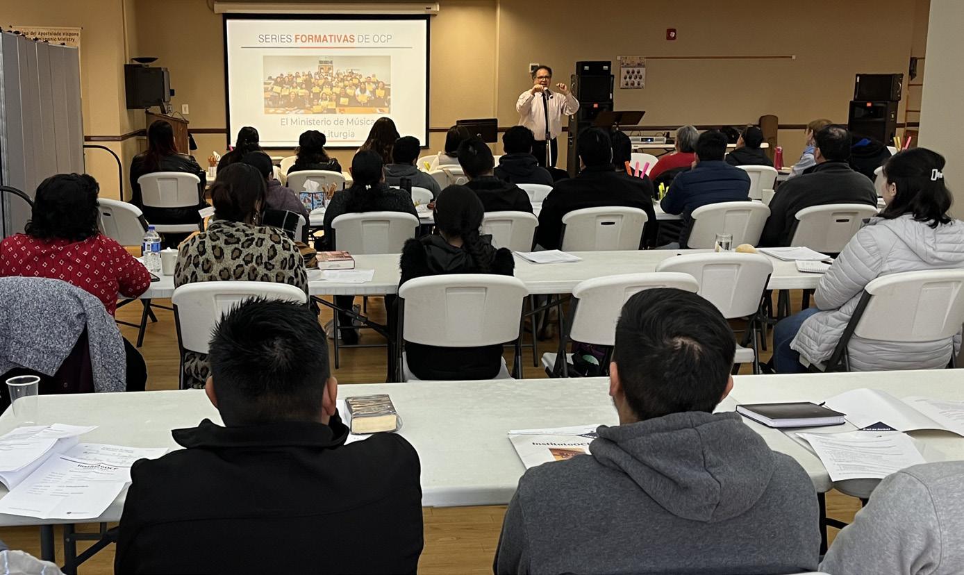 El taller fue dirigido por Jaime Cortez, un reconocido compositor y arreglista de OCP (Oregon Catholic Press). Cortez aporta una gran experiencia y conocimientos en música litúrgica hispana y guió a los participantes en la exploración de la música de Flor y Canto, un popular him -