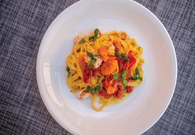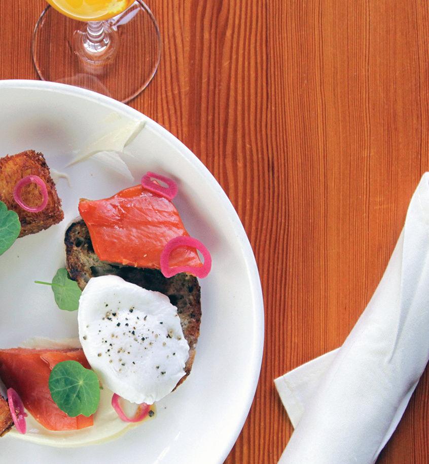 A week or so after the Umbria stop, I am in France. Following the “Discover Rhône” conference, I spend a sunny Sunday strolling along the Rhône River in Côtie-Rôtie, ending up at La Table de César in SaintRomain-en-Gal, just across the bridge from Vienne, sipping rosé and tucking into another take on toast, a