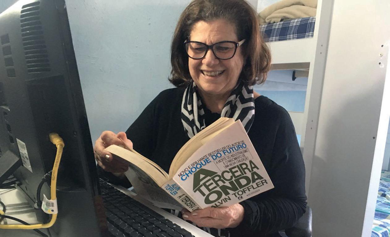 Em um lugar um pouco mais barulhento, encontramos Ivette Karina Safas. Com maquiagem feita, lábios e sobrancelhas marcados, brincos e saltos altos, ela não aparenta os 43 anos que tem. Até há alguns meses professora de Espanhol e psicóloga infantil, ela agora é quem cuida da lavanderia da casa e garante que todos os moradores tenham roupas prontas para usar.