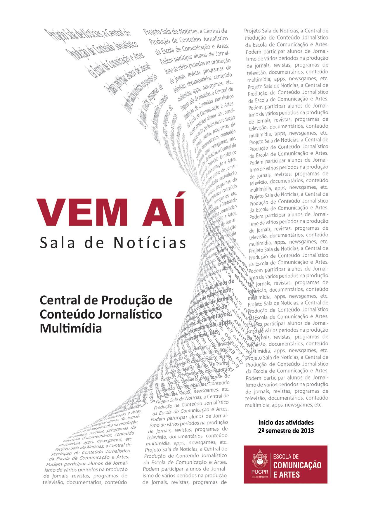 (41) 3271-1395 VEM AÍ S a l a de N o t í c i a s Central de Produção de Alcance uma nova oportunidade. Faça um curso técnico TECPUC. MATRÍCULAS ABERTAS www.tecpuc.com.br