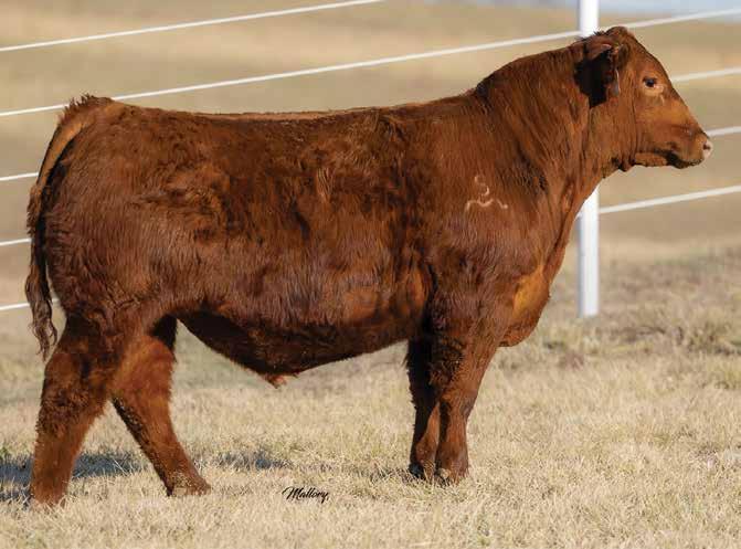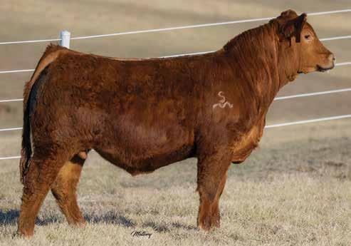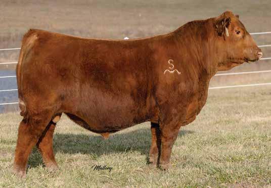 Thick from nose to tail is the best way to describe this stud. M138 is a high growth bull having a top 15% WW and 10% YW while having carcass traits in the top end of the breed. This is a bull that’ll put on look and grow in a set of feeder cattle.