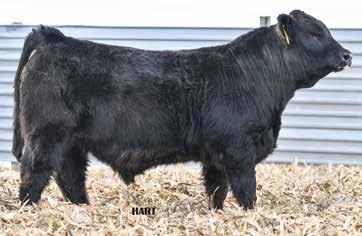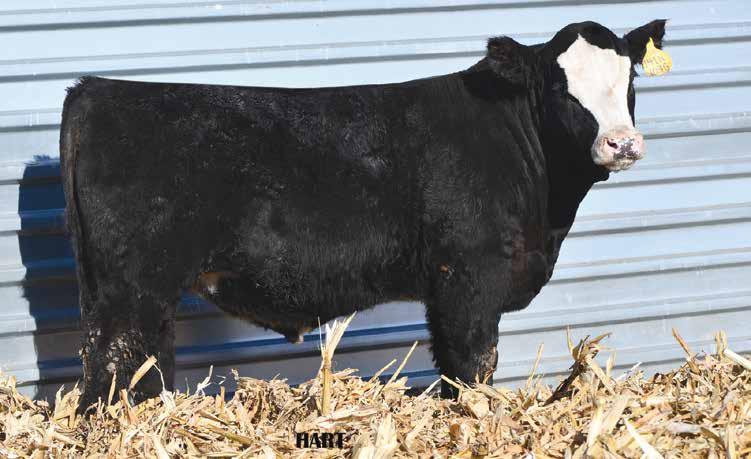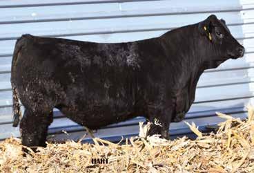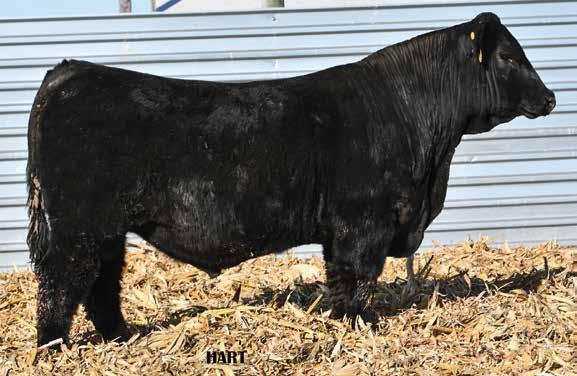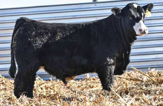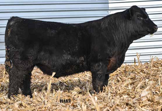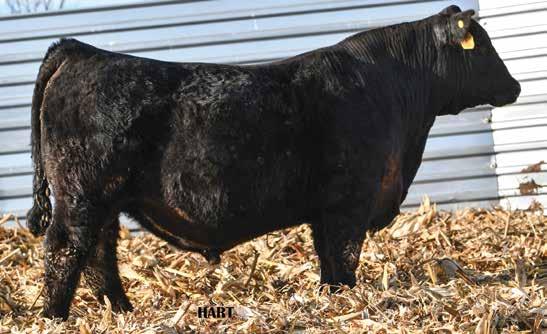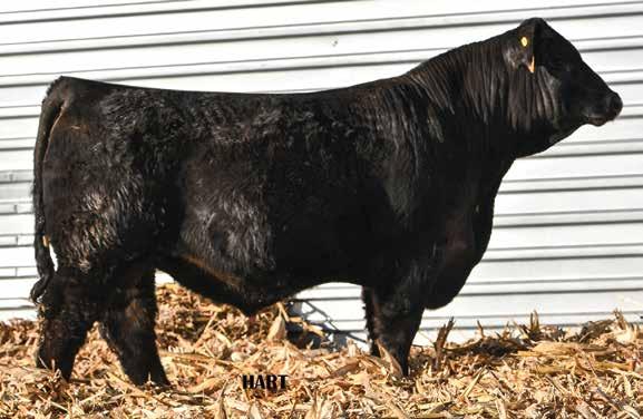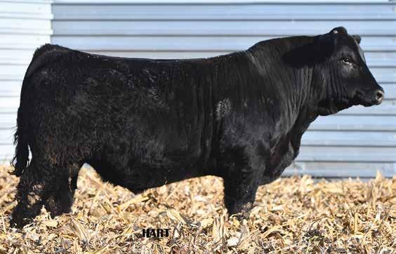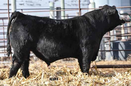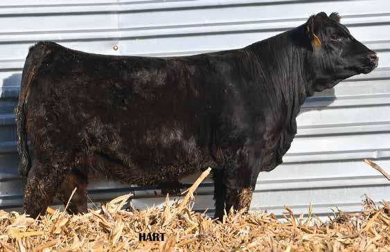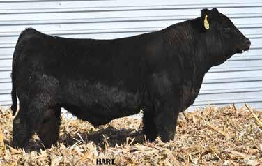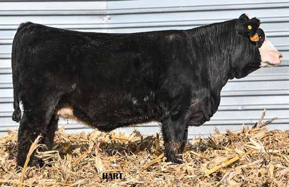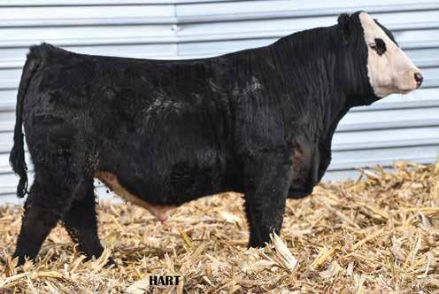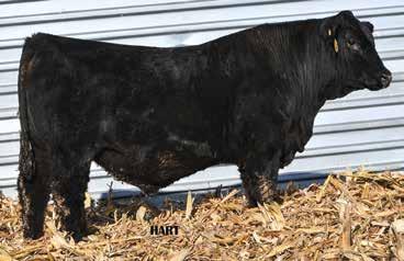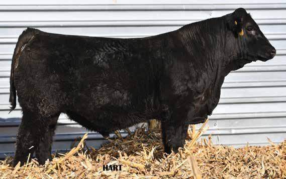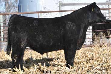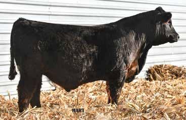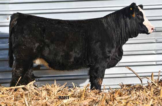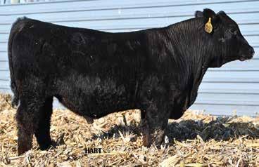 • •Hart 277L- a Rockin H Mr. Smokeshow daughter selling to Bickel Brothers of Firesteel, SD in 24’ 084N is as solid as solid gets. He has all the key components to aid your heifers in comforting and sleep easy calving year. His sleek design and smooth muscle pattern are what helps him belong in the heifer part of your program.