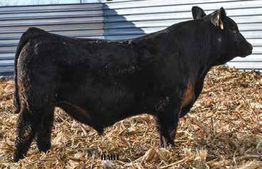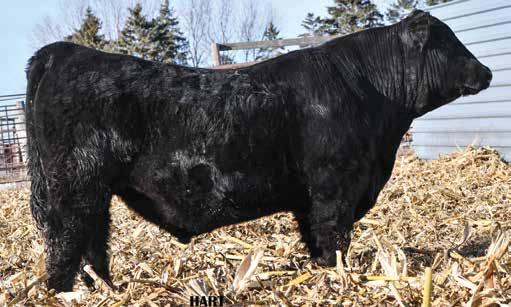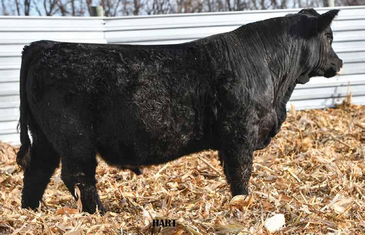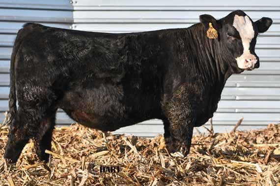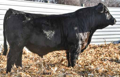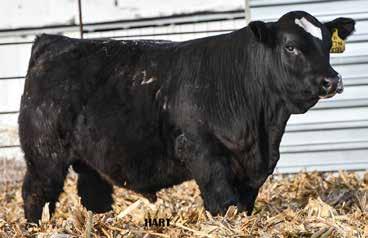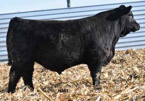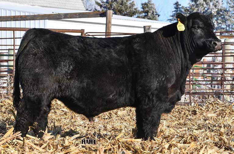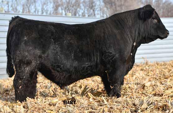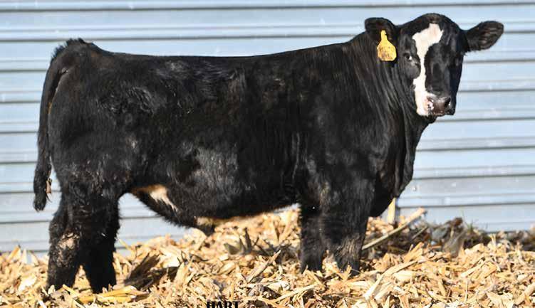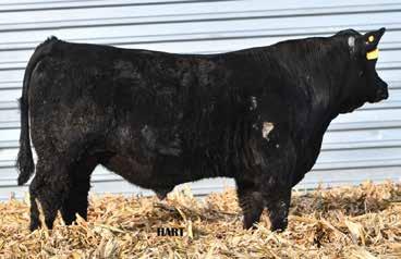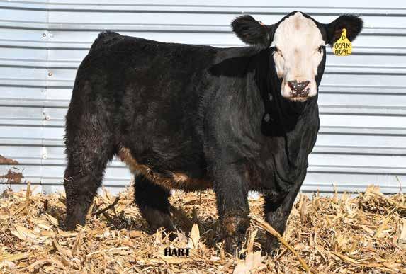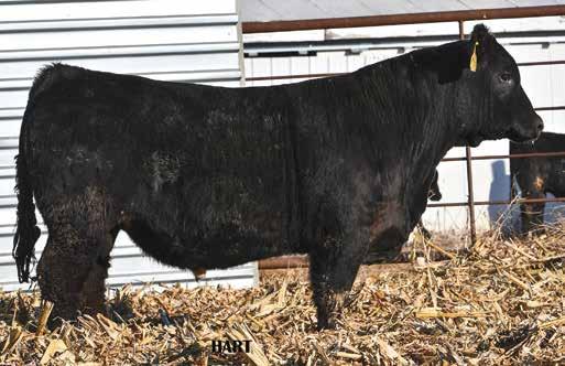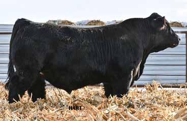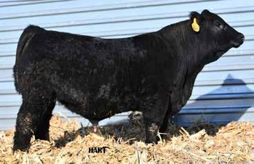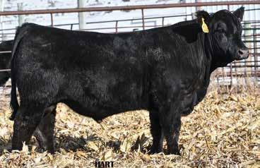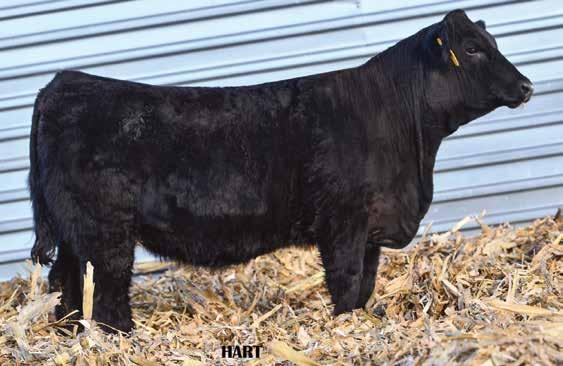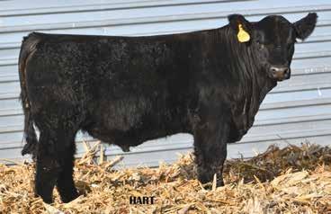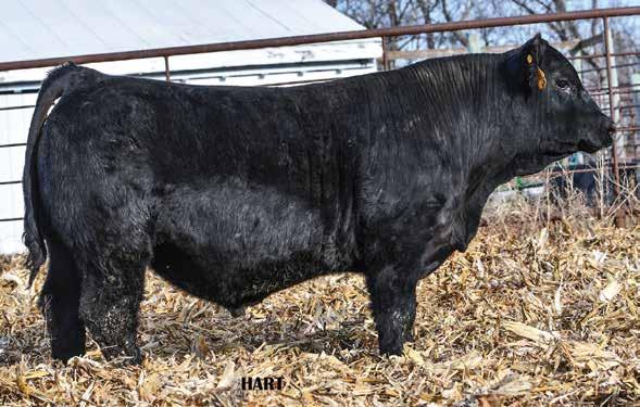 • •Hart 277L- a Rockin H Mr. Smokeshow daughter selling to Bickel Brothers of Firesteel, SD in 24’ 084N is as solid as solid gets. He has all the key components to aid your heifers in comforting and sleep easy calving year. His sleek design and smooth muscle pattern are what helps him belong in the heifer part of your program.