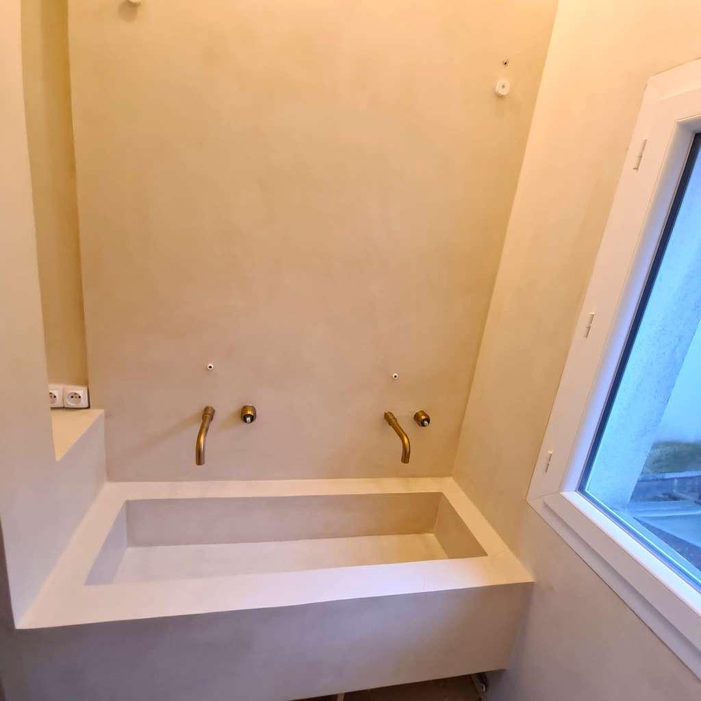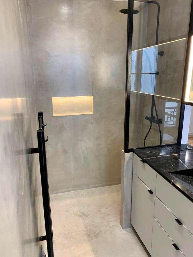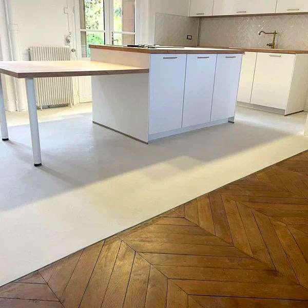 Avec le béton ciré, vous pouvez rénover les surfaces existantes en tout genre avec seulement 3mm d'épaisseur et sans devoir démolir l'existant.