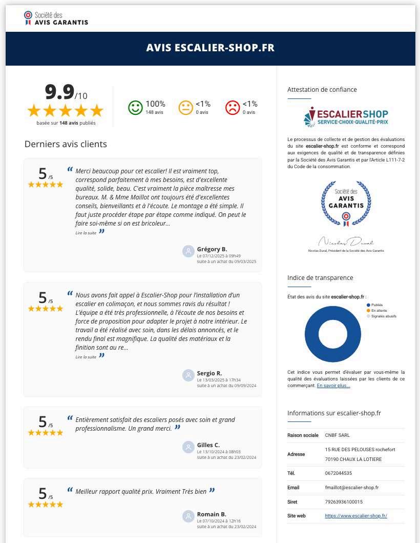 Escalier Shop est spécialisé dans la fabrication d'escaliers sur mesure, escalier en kit (ou escalier standard) depuis 2013. L'enseigne française Escalier Shop est née de la volonté de produire une gamme d'escaliers design, solides et fonctionnels tout en restant au meilleur prix.