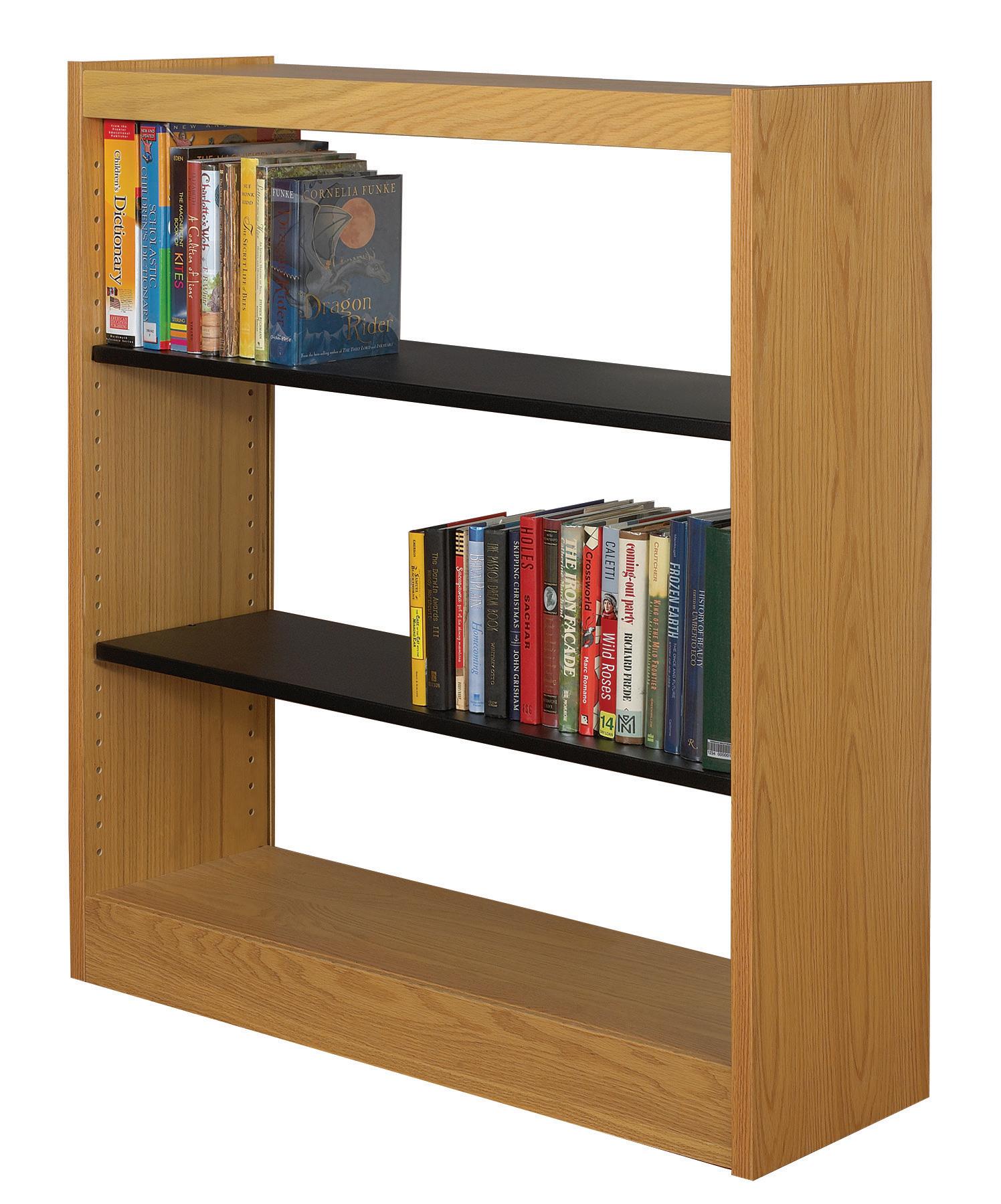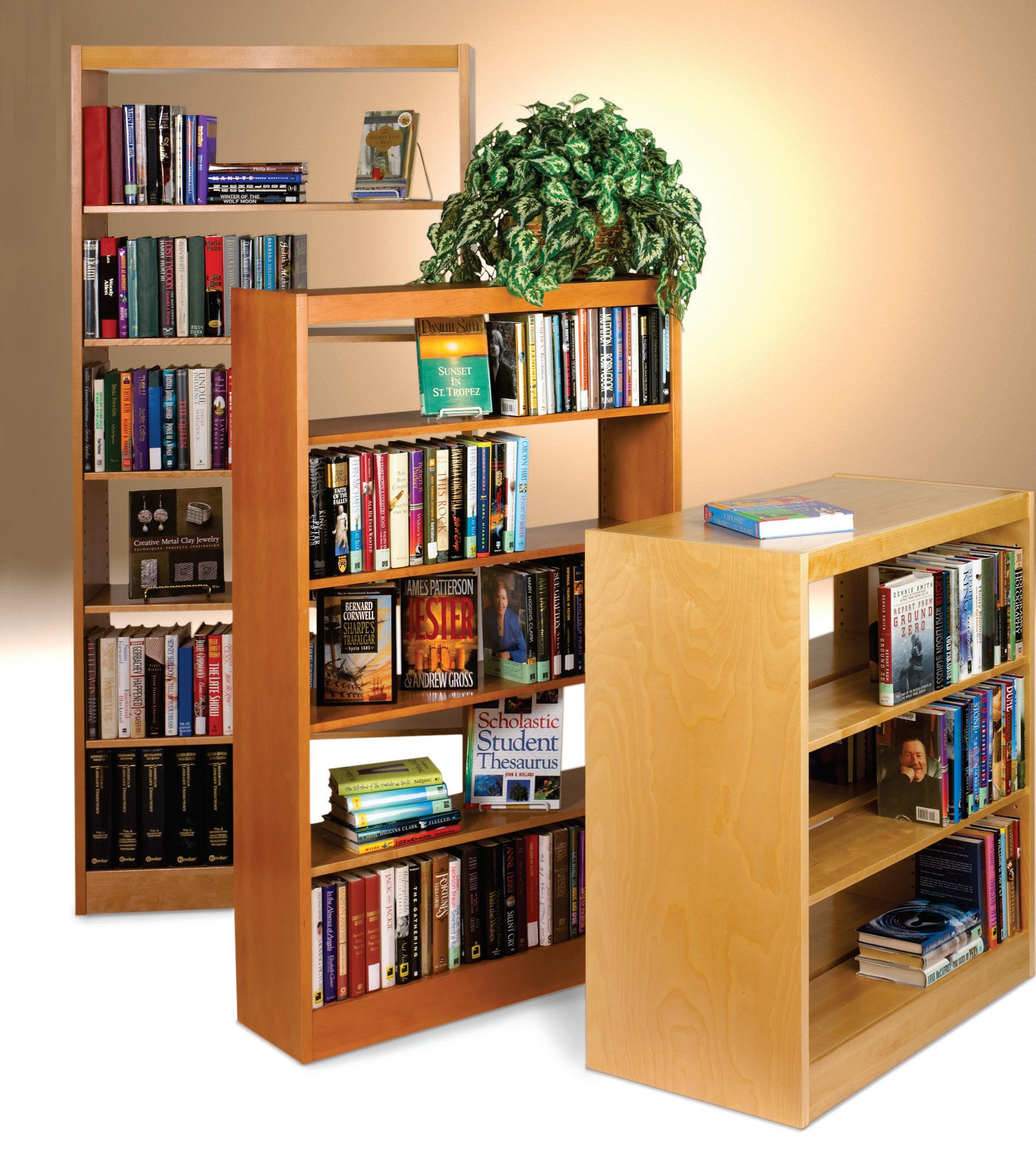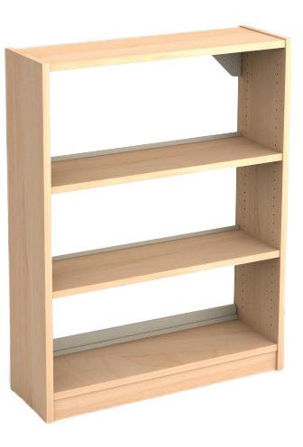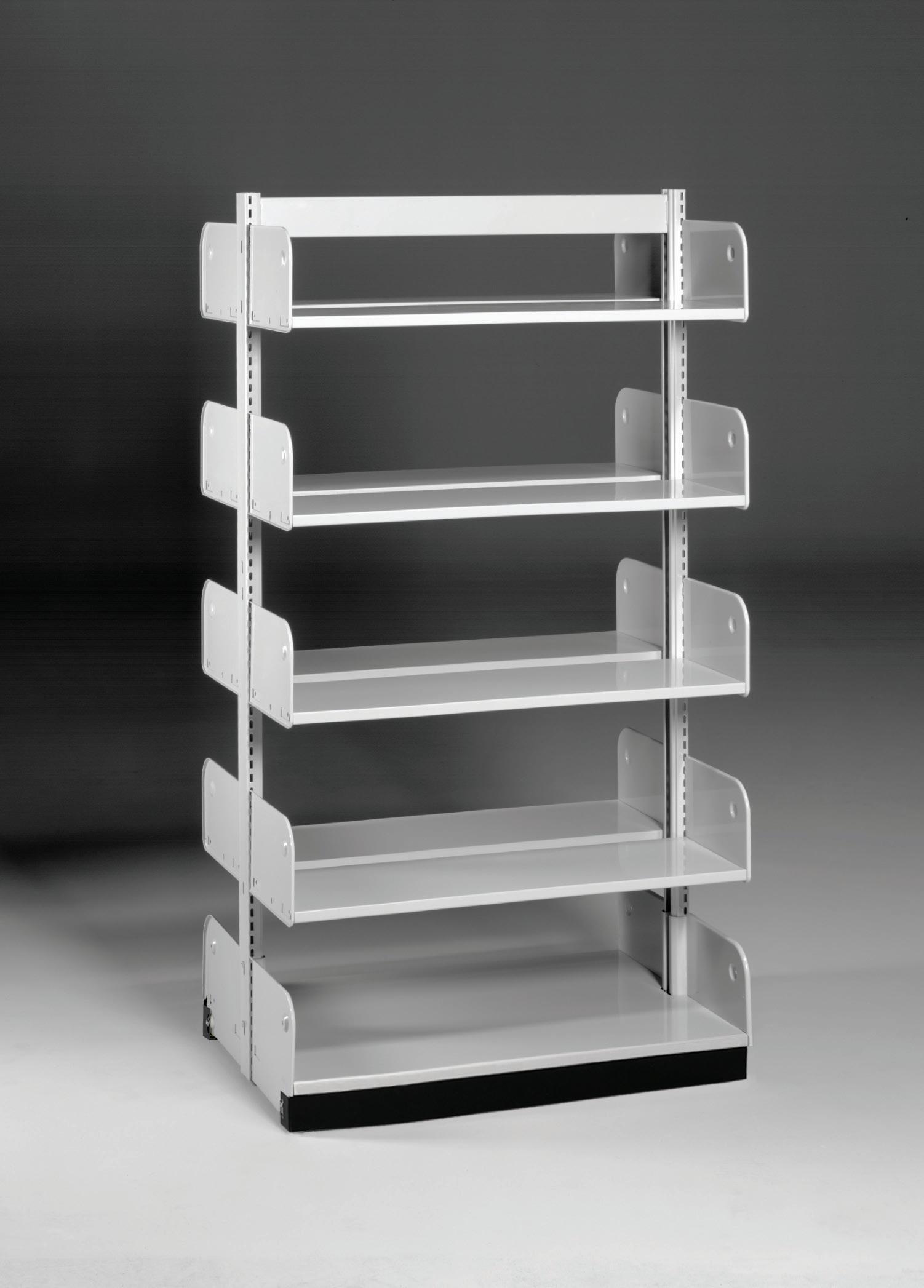 • Double-faced units have 20"D or 24"D end panels and fascia, with adjustable shelves and fixed base shelves on each side. Intended for freestanding applications.