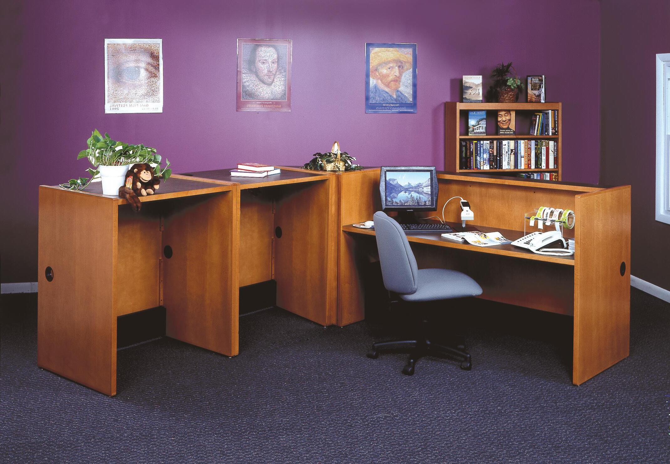 • Grommets in top and side panels; 2"H x 2"D wire chase on all working desk units
