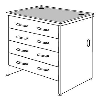 • Drawer Units have two or three drawers, black drawer pulls, and locking box drawer