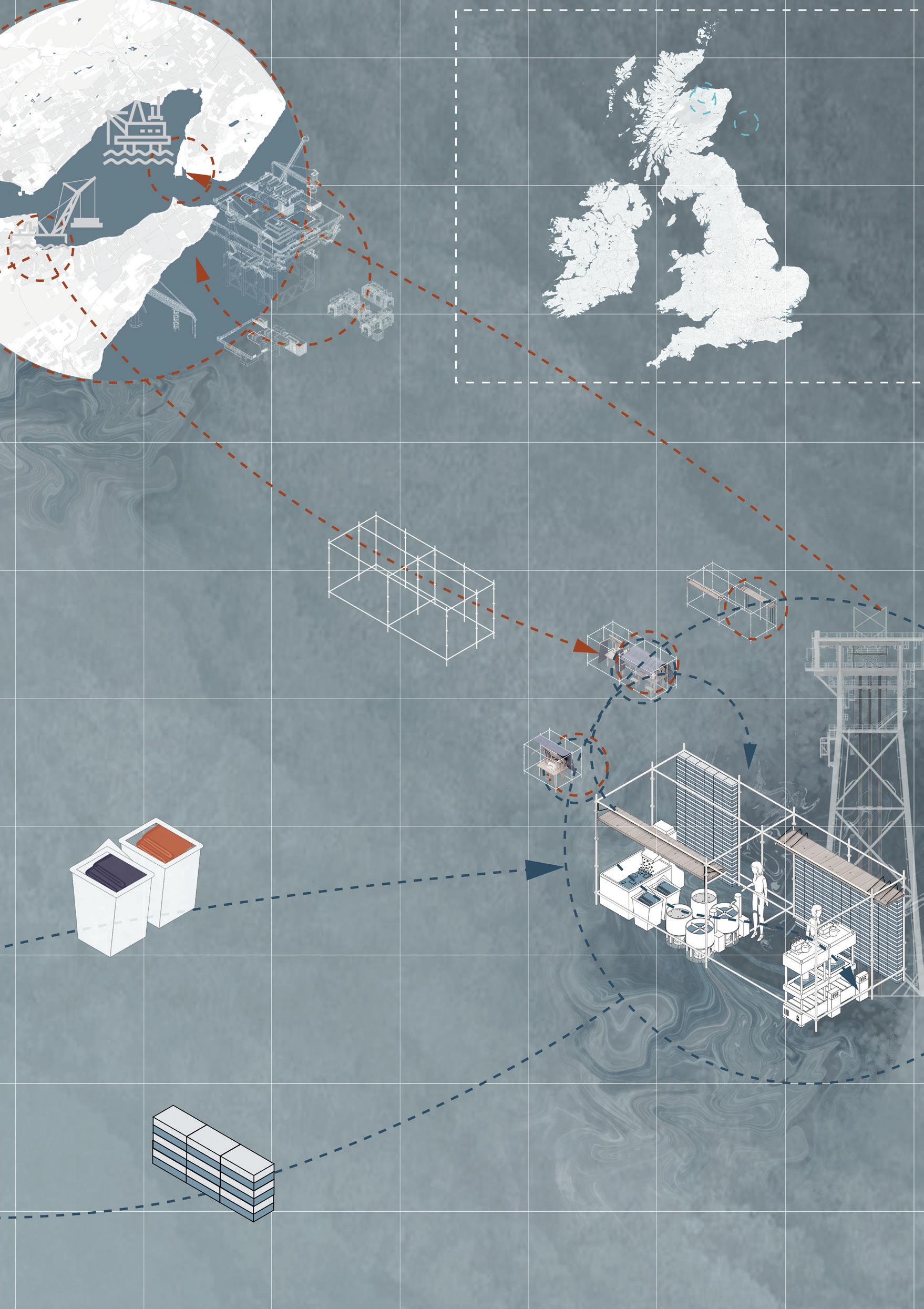 Our approach to studying Aberdeen though is not limited to this single location but it involves examining three specific situations or micro-sites that have strong connections to both the city and the petroleum industry in Scotland. These microsites and situations are: Forties Oil Field in North Sea, Mossmorran Chemical Plant in Fife, and Dales Voe Decommissioning Plant in Shetland. As we move through these micro-sites, we embark on an infrastructural journey that encompasses the different stages of oil extraction, production, consumption, decommissioning, and waste disposal. We view the site as ‘a dynamic relational construct, continuously undergoing transformation in dialogue with other sites.’ 13 By establishing numerous connections among these locations, we construct a more intricate and multi-layered narrative of the petroleum industry and thicken the ground on which our ideas and imaginaries would be cultivated. Moreover, the journey through these micro-sites allows us to identify existing structures that have the potential to serve as support systems for a post-petroleum world.