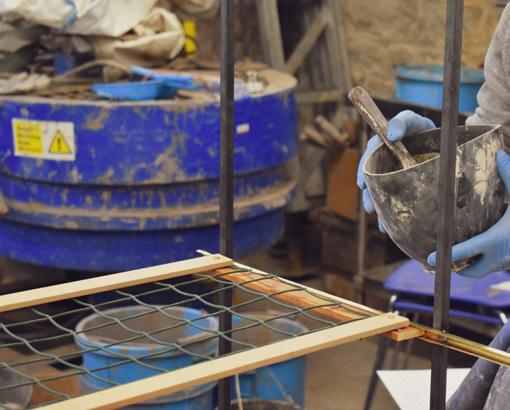 2. A solid brick cut into thinner tiles to repair existing fire damage (inspired by the construction of Catalan Vaults)