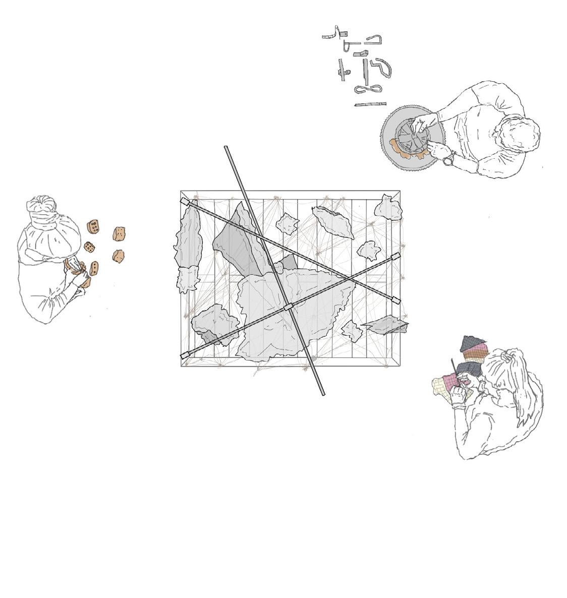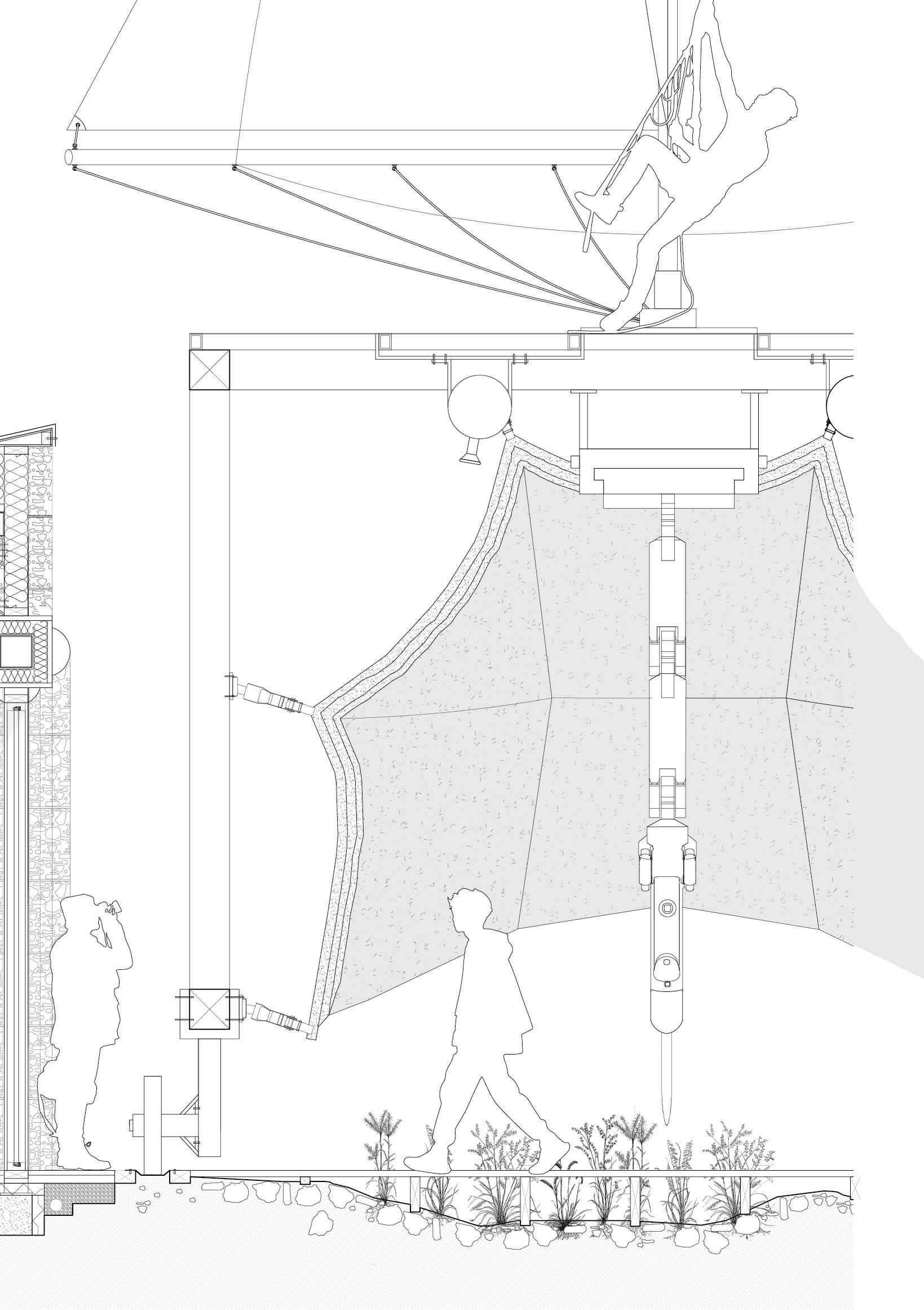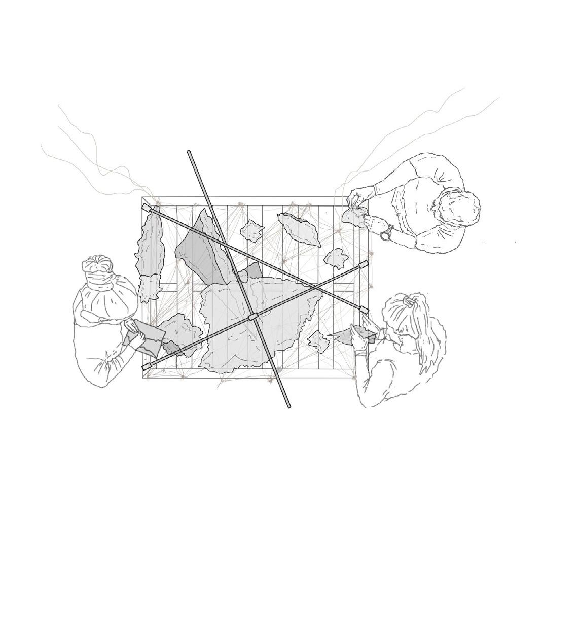 The act of extractivism depletes the land on the outskirts of urban areas, leaving behind only a thin surface in the cities. Architecture can either support extractivism or become an act of ecological support, constructing a different kind of ground. By introducing a counternarrative of extractivism, architecture can register the complexities of the ground and challenge destructive industries. To do this, the process of architectural design (through research, practice, and pedagogy) can register ‘thick complexities’ of the ground.1 Architecture as support structure registers the thick complexities of the ground, uncovering its deep-rooted histories.