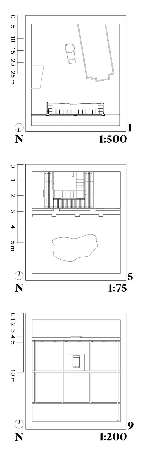 Left. Site Model. Above. Sectional Model. Proposed Sauna.