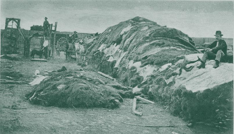 The 19th century saw a mass westward expansion by white Euro-American settlers, who brought with them colonialist ideals about the privatization of property and the exploitability of natural resources. With the Union Pacific Railroad literally laying the tracks for colonization and an army of gun-wielding troops with orders to shoot as many bison as they could, these settlers transformed the prairie landscape into farmland and hunted the Mighty Buffalo to near extinction. By the early 1880s, the unthinkably massive bison population, which numbered somewhere from 20 to 50 million at its peak, had been reduced to less than 1000 individuals. This mass slaughtering led to the demise of the Great Plains ecosystem, and