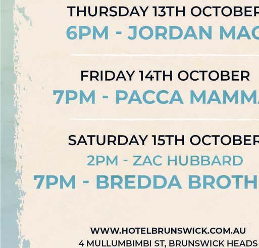17 OCT CLASSES STARTDIVEINTOTERM4!www.spaghetticircus.com Flood scholarships available Active Kids, Creative Kids and Parents NSW vouchers accepted Cnr Brigantine & Wollongbar St Byron Arts & Industry Estate 6685 5212 • hotelandhome.com.au AUTHORISED DEALER BYAWORKOFART Build Your Own Business. Be Your Own Boss. Decide When and Where You Want to Work. Full Training Provided. $2,000 Pay-For-Work Guarantee. Contact us now to learn more about this exciting opportunity. FRANCHISES AVAILABLE IN BYRON BAY. M: 0417 247 324 E: info@jimshazmatremoval.com.au W: www.jimshazmatremoval.com.au NO NEED TO VENTURE TO THE ENDS OF THEEARTH! JUST SAIL ON OVER TO THE EMPIRE FOR MULLUM’S TASTIEST TREATS. IN AN EPIC BATTLE WITH YOUR HUNGER... AFTER A KRAKENGOOD BURGER?! SK R EEEEEeee! ‘ave at you, yaBeastie! 20 BURRINGBAR ST MULLUMBIMBY TAKEAWAY PHONE ORDERS: 6684 2306 OPEN: 7 DAYS 9am–3pm • LICENSED VENUE empiremullum.com.au EmpireMullum ORDER ONLINE: mryum.com/theempire Scan this QRcode to Order and pay online with Mr Yum! Our Habitat, Office 26, 20-1 Porter St, Byron Bay www.junoenergy.com.au 0425 256 802 sales@junoenergy.com.au electrical licence no. 255292C CEC member since 2010