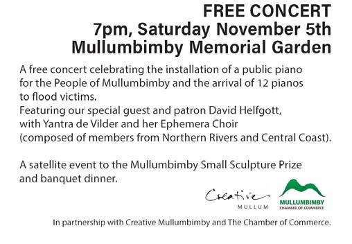Don’t forget the Mullum Show is on November 11–13 at the showgrounds. Visit www.mullumbimbyshow. org.au for more info.
