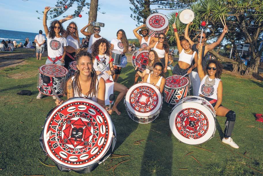Afro-Brazilian drumming group, Batala, staged an impromptu performance at Main Beach Byron on Sunday to raise cancer research awareness. Kim Kilgariff told The Echo that Batala were raising funds for local woman, Sally, who is undergoing Supportive Oligonucleotide Therapy (SOT) cancer therapy, which has promising results, but is only available overseas. Sally’s gofundme link is gofund.me/005a4e7d.