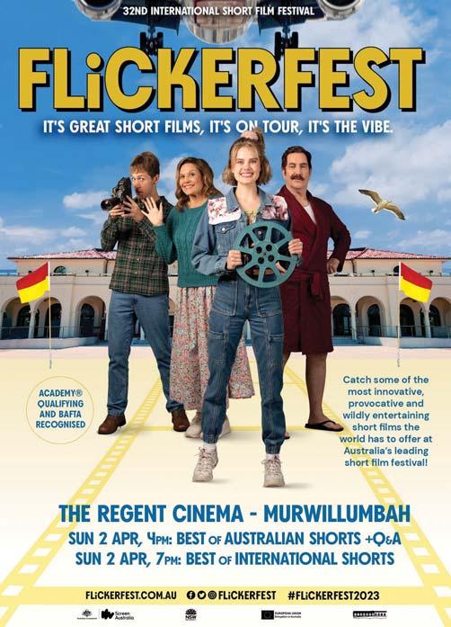 Australia’s leading Academy® qualifying and BAFTA recognised short film festival, Flickerfest, will screen its ‘best of’ international and Australian shorts, followed by a Q&A with filmmakers, on Sunday April 2 from 4pm at Murwillumbah’s Regent Theatre. See www.flickerfest. com.au/tour/murwillumbah for more info.