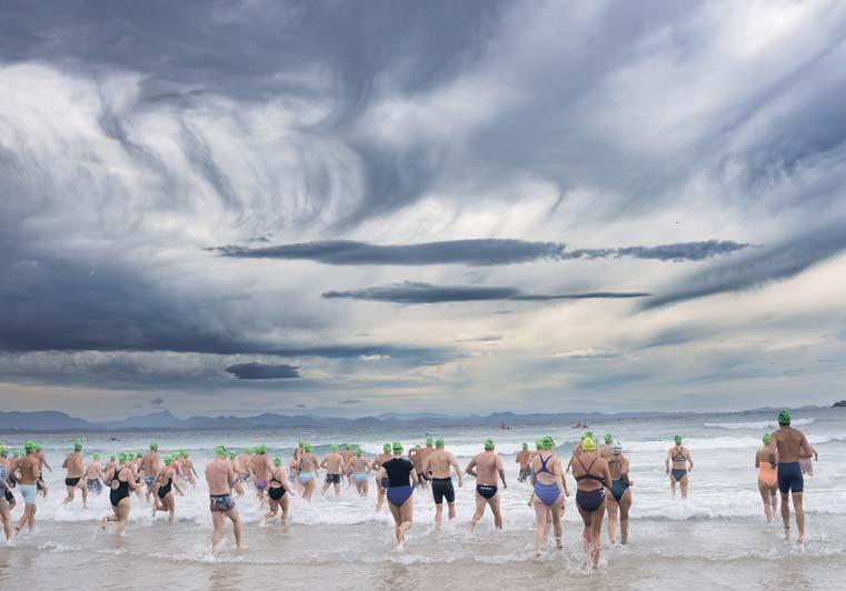 Keen swimmers converged on the bay last weekend for the Byron Bay Ocean Swim Classic. Around 1,200 swimmers took part in two main comps: one from from Wategos Beach to Main Beach and another from Clarkes Beach to Main Beach. The day was also a great day for fundraising, with Byron Bay Surf Club, BayFM, Byron Bay Ambulance, Byron Bay Community Centre and Byron Bay Herb Nursery just some of the beneficiaries slated to share in the funding pool. Photo Jeff ‘Togs On, Cap Ready’ Dawson