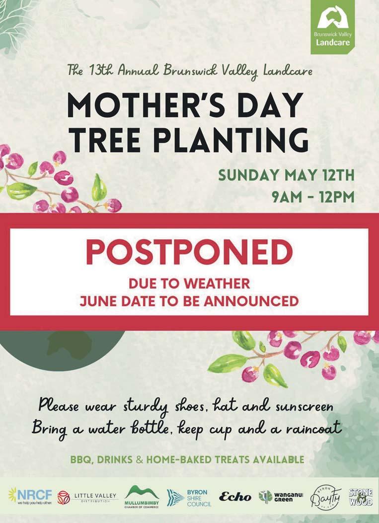 FYI the Mother’s Day tree planting planned for May 12 has been cancelled owing to the inclement weather.