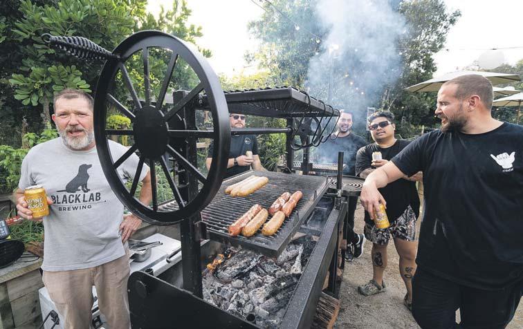 From left, Greg Cromwell, whose Goonengerry farm supplied the meats for Caper’s barbecue last Friday, David Lovett, Louis Tikaram, Ross Magnaye and Jedd Rifai.