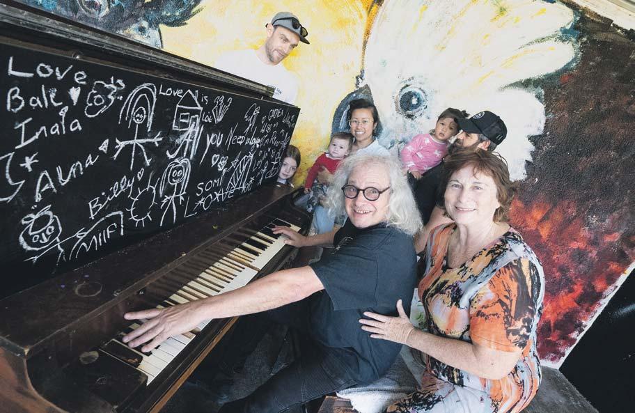 Piano tuner and composer, Norman Appel, with Magenta Appel-Pye, Sam, Mila, Mable Leana, Bella and Luke. Photo Jeff ‘Ebony and Ivory, But Mostly Synthetic’ Dawson