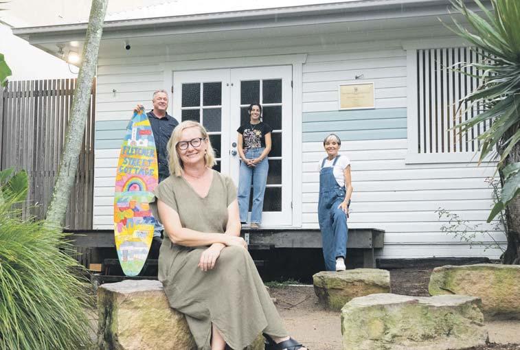 Foreground, Ingrained Foundation’s Jodi Littlewood, with Damian Farrell, Mardi Powell and Amanda Peters from Fletcher St Cottage. Photo Jeff ‘High Winds’ Dawson