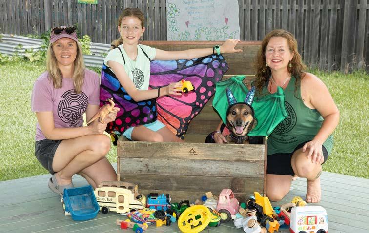 Shara Community Gardens Secretary Alison Bird, volunteer Kira, digging inspector Lexi and President Paula Brown, think the new toybox passes muster. Photo Tree Faerie