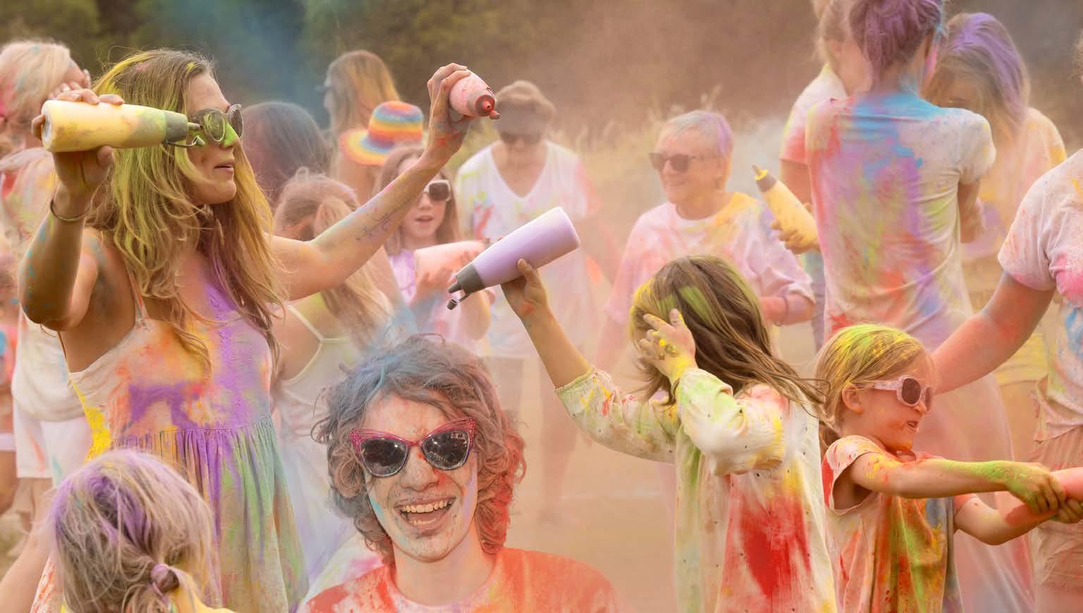 About 100 women and girls powdered their noses, and much more at Sunday’s Holi Festival, the festival of colour at Brunswick Heads. Put on by Together She Thrives, organic coloured flour turned the white-clad revellers into walking rainbows.
