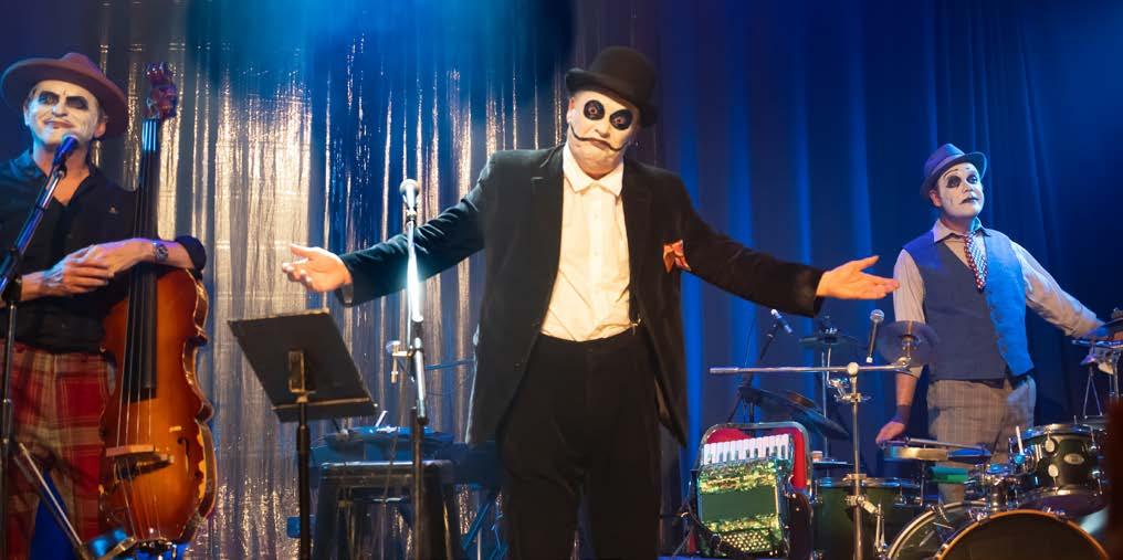 Macabre post-punk cabaret trio, Tiger Lilly, spread their ‘self help’ message of hope: ‘If you want to win, don’t be dim, take heroin’ at the Bruns Picture House last week. Photo Jeff