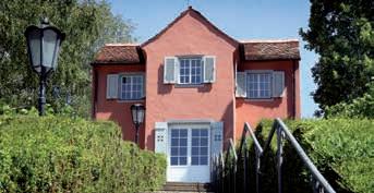 Inmitten von Weinstöcken liegt das Kleinod auf einer Anhöhe über der Meersburger Altstadt. Garten und Terrasse laden mit einem atemberaubenden Blick über den Bodensee bis hin zu den Alpen zum Verweilen ein. Auch die berühmte Dichterin Annette von DrosteHülshoff war von dem um 1600 erbauten Rebhäuschen begeistert und kaufte dieses, um es als ihren schöpferischen Rückzugsort einzurichten.
