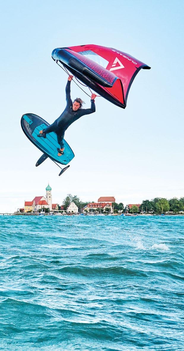 Wingsurfen heben die Sportler so richtig ab und katapultieren sich mit Karacho mehrere Meter über das Wasser.