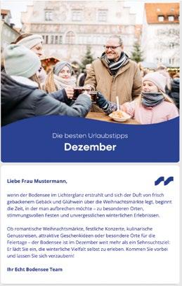 Seit vielen Jahren hat sich Echt Bodensee als Marke etabliert und wächst erfreulicherweise immer weiter. Mehr und mehr Städte und Gemeinden am Seeufer sind als engagierte Partner hinzugekommen. Dementsprechend sind die Urlaubsund Freizeitangebote heute umfangreicher denn je.