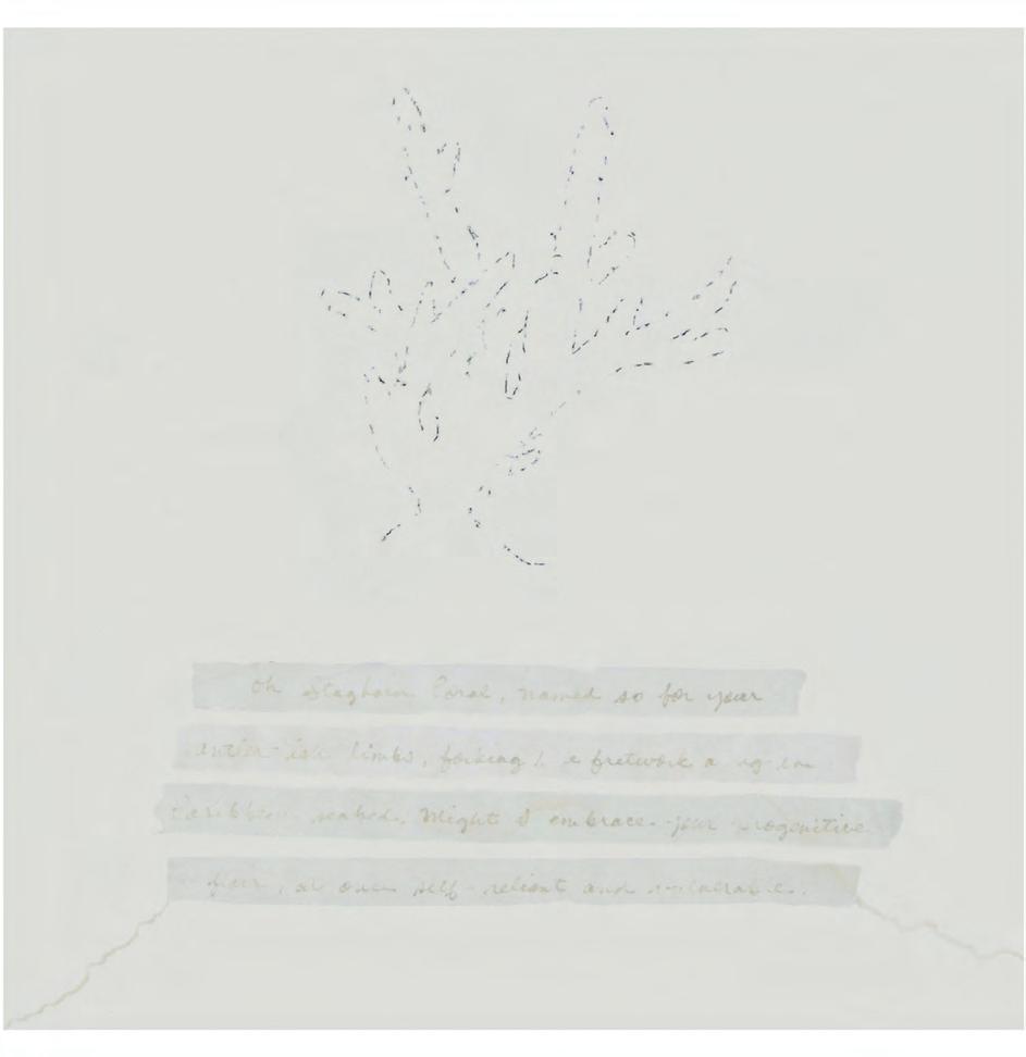 Iron Formations are rubbings from a band of exposed iron ore that sits near an isolated mine in Soudan, Minnesota. The mine is a popular tourist attraction, and the bands of ore sit in an adjacent woodland. The beauty, strata and age of these bands, echo the formation of the iron ore— when earth existed without oxygen. I am fascinated by the reproduction of the cell—and that a plant cell wall has a rigidity that mammals lack, the existence of a chloroplast and the magic of photosynthesis. My work is an attempt to represent the vegetal and the material as agents of their own, not just as aesthetic objects, to transform the abstract rhetoric of climate change into reality. My ancestors moved from Slovenia, Finland and Italy to Minnesota and I am a daughter and granddaughter of workers in the Iron Range of Minnesota. lauraaholayoung.com