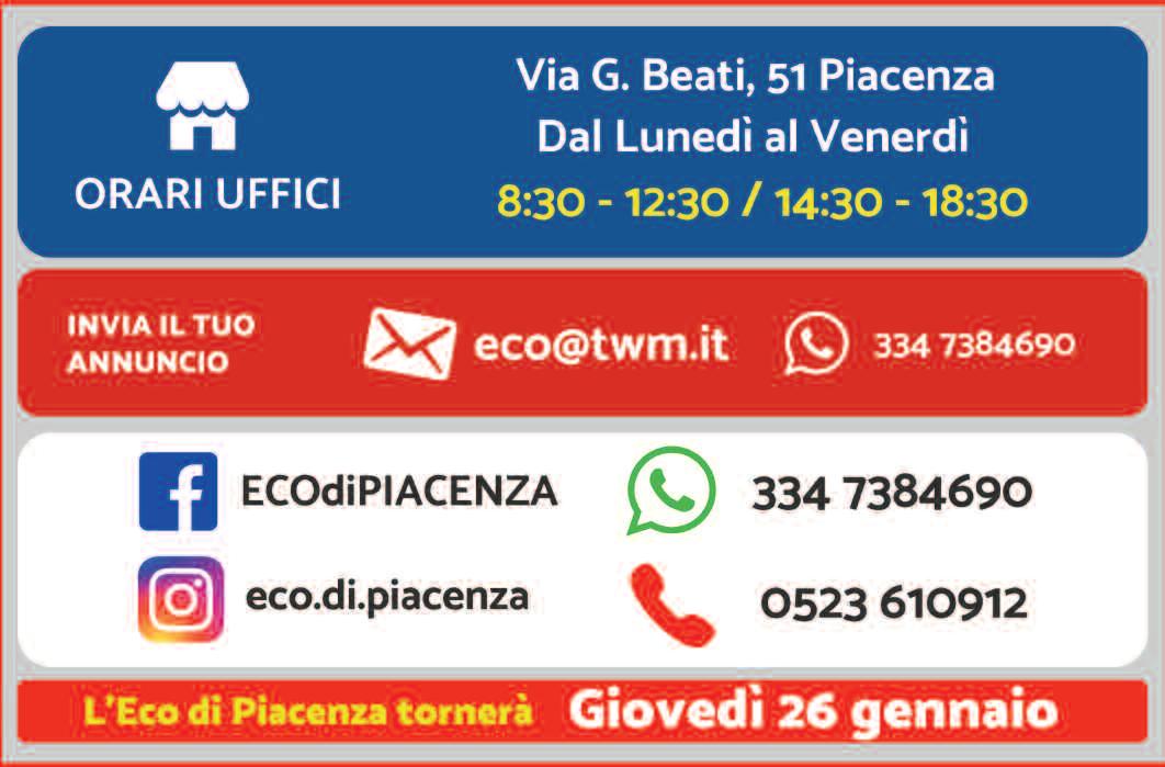CASA AFFITTO zona Sant ’Antonio-infrangibile - Quar toVallera - Gossolengo cerco max 400 €/mese Tel. 339 7305932 CERCO GARAGE doppio o piccolo magazzino, in af f itto a prezzo modico, da adibire a piccoli lavor i hobbistici, Piacenza e limitrof i TEL. 377 1038313 MASSIMO 09 n ° 0 1 - 1 2 g e n n a i o 2 0 2 3