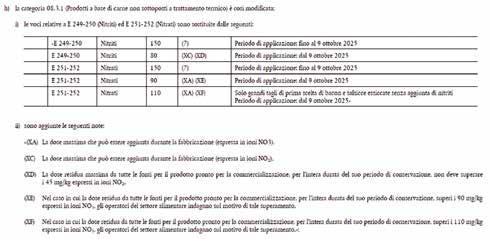 Il Ministero della Sanità dispone nuovi limiti degli additivi alimentari nitriti (E 249-250) e nitrati (E 251-252), ecco le indicazioni (Nota 0040719-07/10/2025)