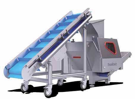 Cubettatrice ad alta capacità produttiva adatta al taglio perfetto di julienne di prosciutto cotto. Facilmente inseribile in linee automatiche, nastro di scarico incorporato, velocità variabile, connessa e 4.0 ready.