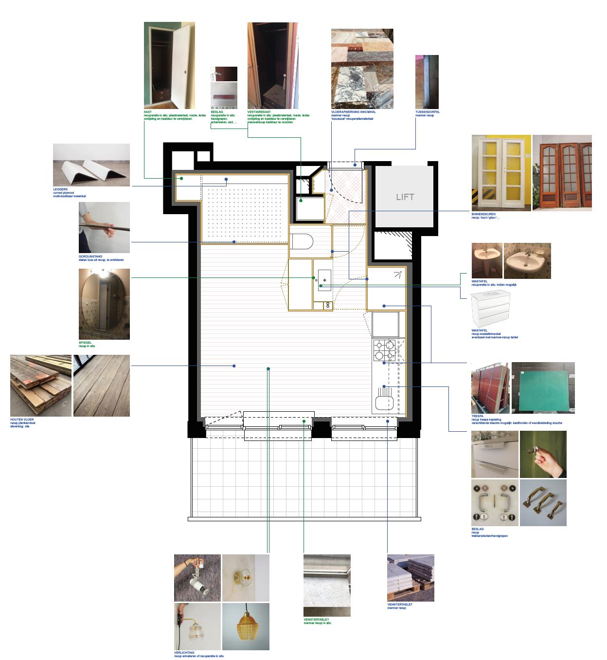 Dit is geen renovatieproject. Dit is een leertraject. Eerder een proces-opdracht dan een opdracht voor het renoveren van 3 studio’s. We (AGSL en ontwerpteam) doen dit niet om een pilootproject te realiseren. Wel om (zelf)vertrouwen te kweken mbt. circulair renoveren. De renovatie van de studio’s is een middel om praktische kennis & hardcore data te verzamelen waarmee de haalbaarheid en wenselijkheid van circulair renoveren wordt getoetst. De doelstelling is om opschaalbare oplossingen en werkwijzen te ontwikkelen die ingang kunnen vinden in de (sociale) woonsector. Circulaire oplossingen zijn geen gimmick. Wel een weloverwogen antwoord.”