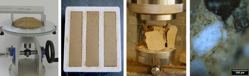 Tested against DIN 18947 (earth plasters) strength + shrinkage, new standard required
