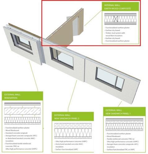 Wall build-up: Earth plaster rough (straw) + Earth adhesive + Pavaboard + Pavaflex
