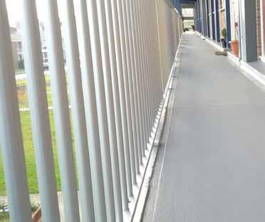 Door het aanbrengen van een ALSAN vloeibaar kunstharssysteem op bestaande of nieuwe galerijvloeren wordt het beton duurzaam beschermd tegen het indringen van water, dooizouten en andere externe factoren. Een antislip-afwerking verhoogt de veiligheid en het comfort: een afwerking kan gekozen worden in iedere gewenste kleur of patroon.