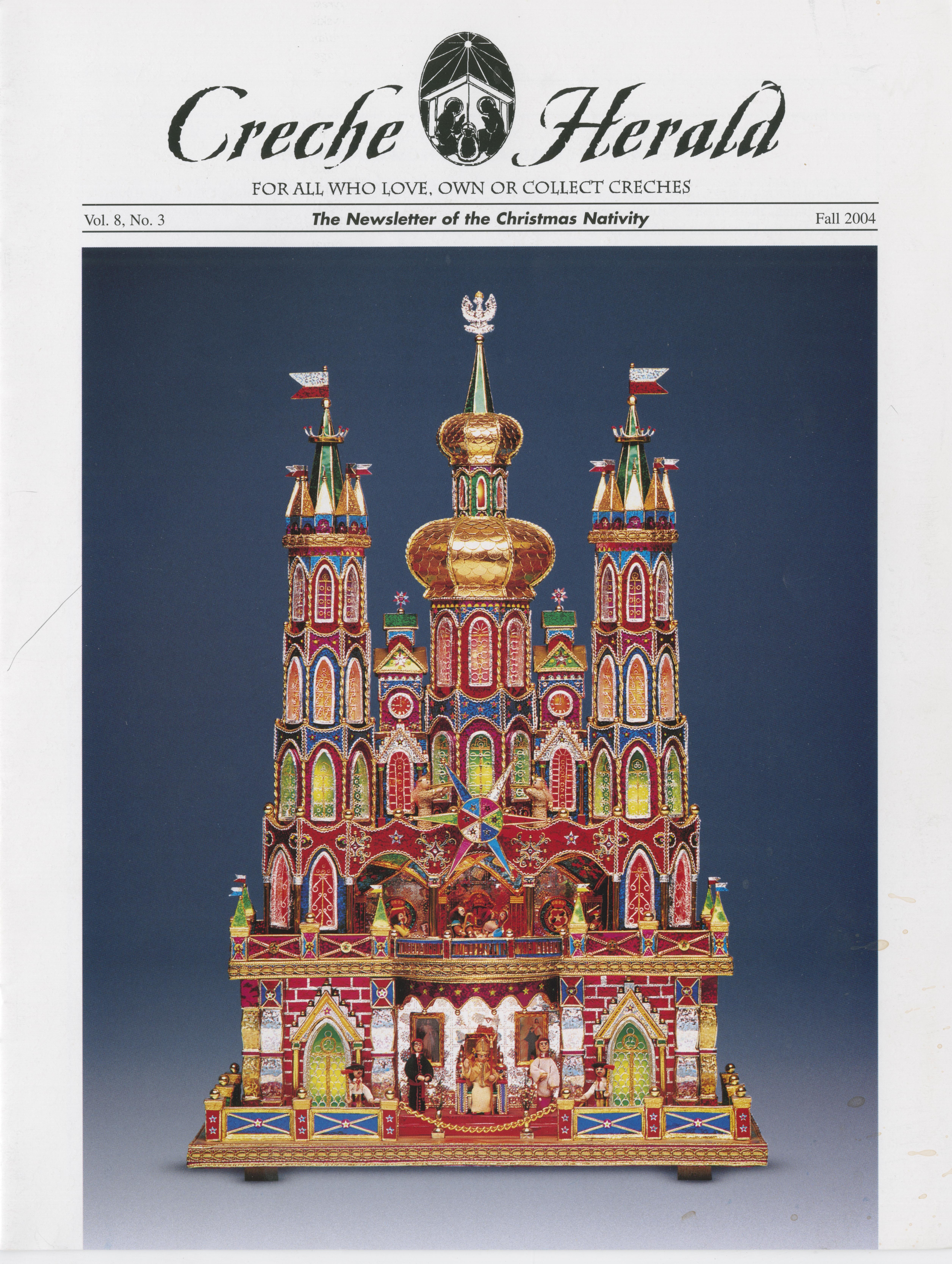 After ten days of not finding any Nativity or Christmas items during our trip, our small group finally reached Cesky Krumlov, a medieval town three hours south of Prague. I was hopeful about this town as I had found an exceptional set there two years earlier. The moment I entered one of the shops I saw a shelf full of hand carved wooden figures and houses. I turned around, and the figures continued in another case-more figures, more houses. Then a third case with all these marvelously carved figures All were from the 1700s. Some in unique poses, such as the shepherds lying down watching their sheep. All with original paints and in great repair. Needless to say, I had to have them all-all 200 pieces. After paying my money, I figured I had a whole ocean going home during which to decide what to sell to pay for my new treasures-costly but well worth the investment. Arlene Considine, Clinton, Iowa, travels .frequently to Europe to locate unique Nativities.
